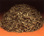hammers "hogerizes" them. The finely-ground particles, along with the