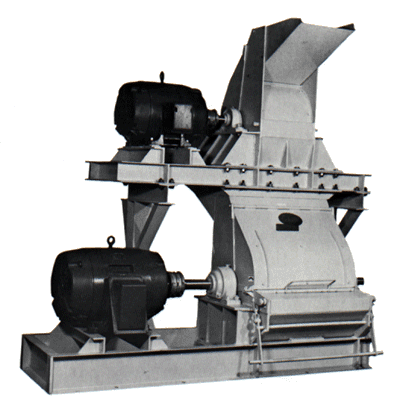 wood waste. It hogs this bulky scrap and discharges it by gravity to the