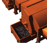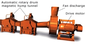 nails and other tramp iron, are sucked into an automatic rotary drum